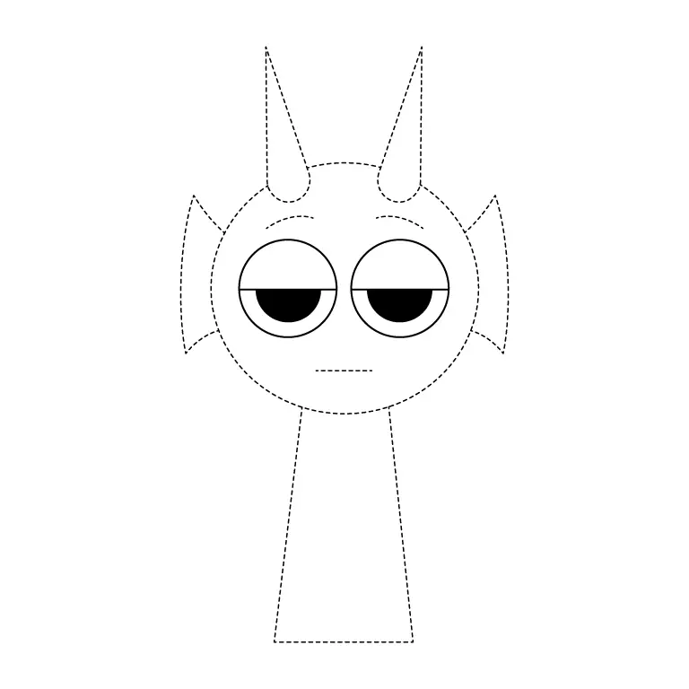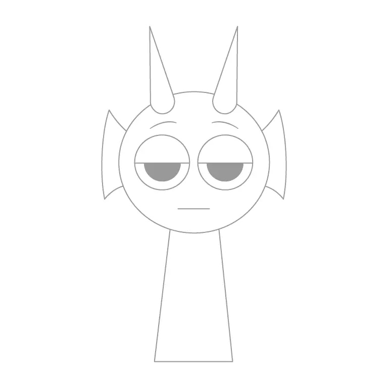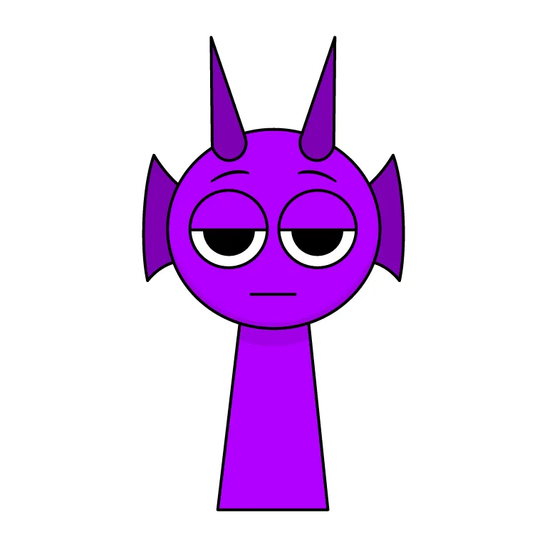 Clean up the drawing by outlining the shapes with bold lines. Erase unnecessary guidelines and add details or colors to Durple in the Incredibox Sprunki style.