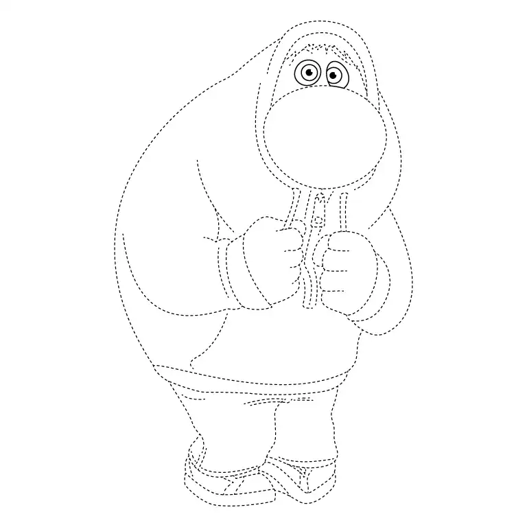 Draw a rounded body beneath the hood. Ensure the shape appears bulky, emphasizing the character’s slouchy posture.