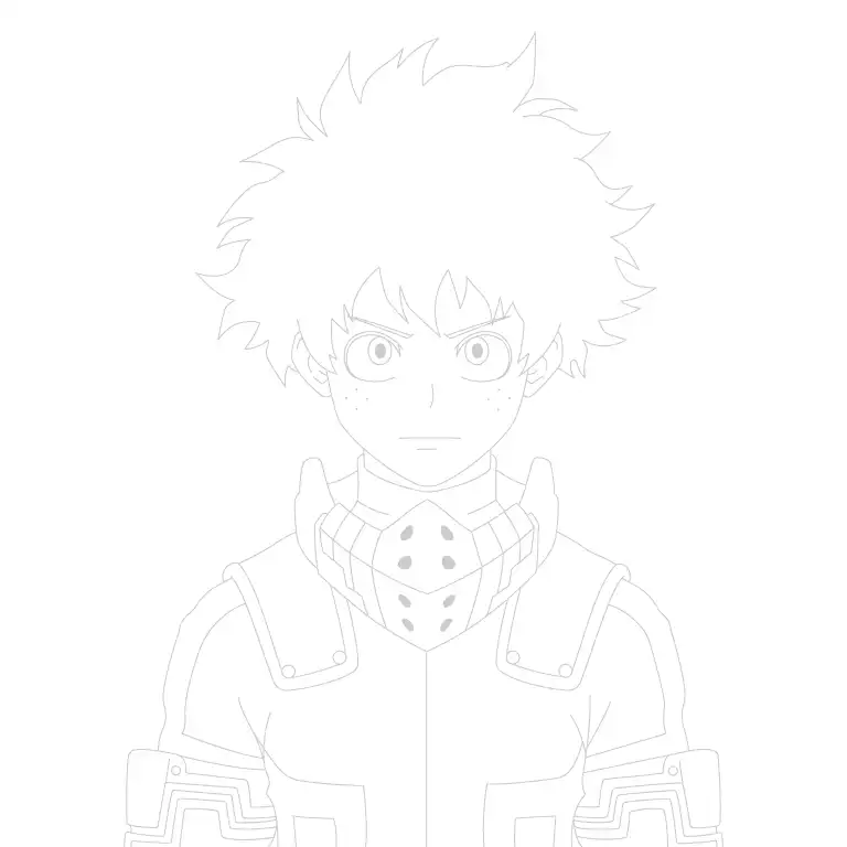 Clean up the sketch by erasing unnecessary lines and darkening the final outlines. Add finishing touches to the details of his costume and any creases or folds in his outfit. Your drawing of Izuku Midoriya is now complete!