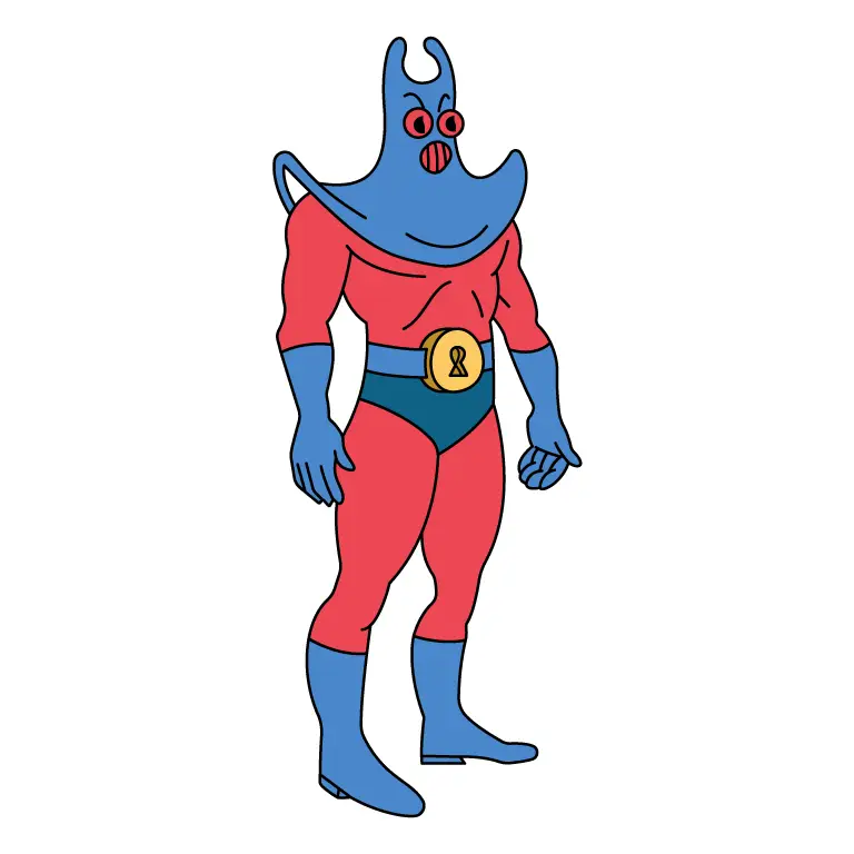 Extend two strong arms from the sides of the mask. Draw one open hand and one little bit clenched to give him a powerful stance.