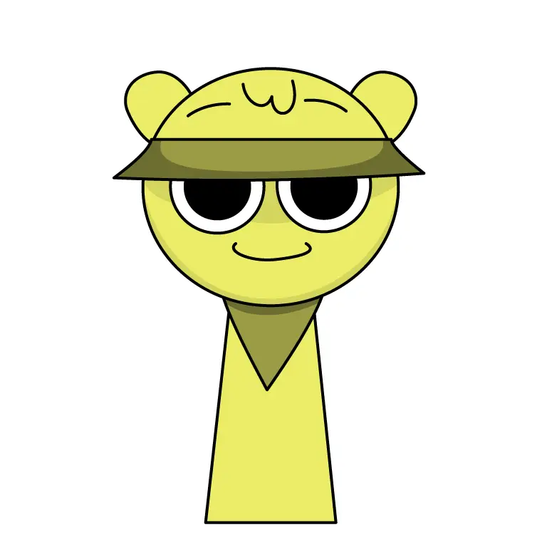 Inside the head, draw two large circular eyes partially covered by the Cap. Add smaller circles inside the eyes for the pupils and the inner eye detail.