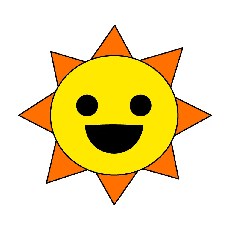 Go over your sketch with a darker pencil or pen to define the lines and clean up your drawing. Darken the eyes and mouth. Add shading or color to make Mr. Sun vibrant. Your drawing is now complete and ready for display!