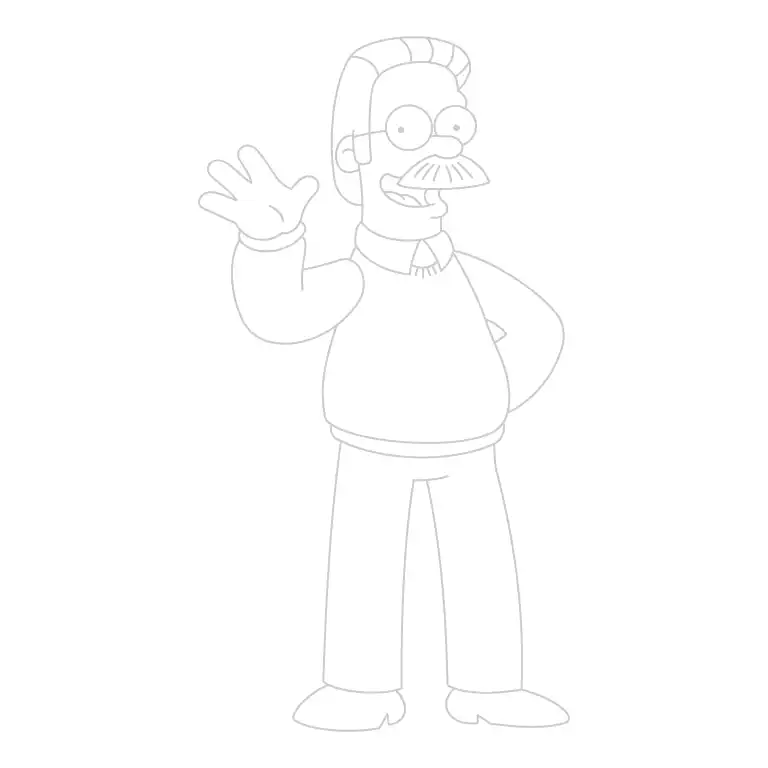 Review the drawing and refine any lines that need adjustment. Erase any unnecessary sketch marks and add final detailing to complete the drawing of Ned Flanders!