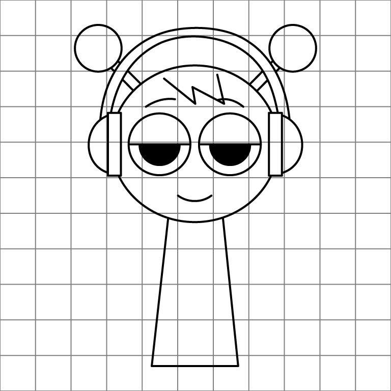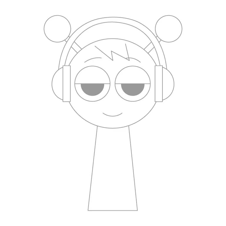 Darken the outlines of your drawing to make the shapes stand out. Fill in the pupils of the eyes and shade them to give them depth. Add small details like slight curves on the body or accents around the headphones if you want. With everything in place, your drawing of Oren from Incredibox Sprunki is now complete and ready to show off!