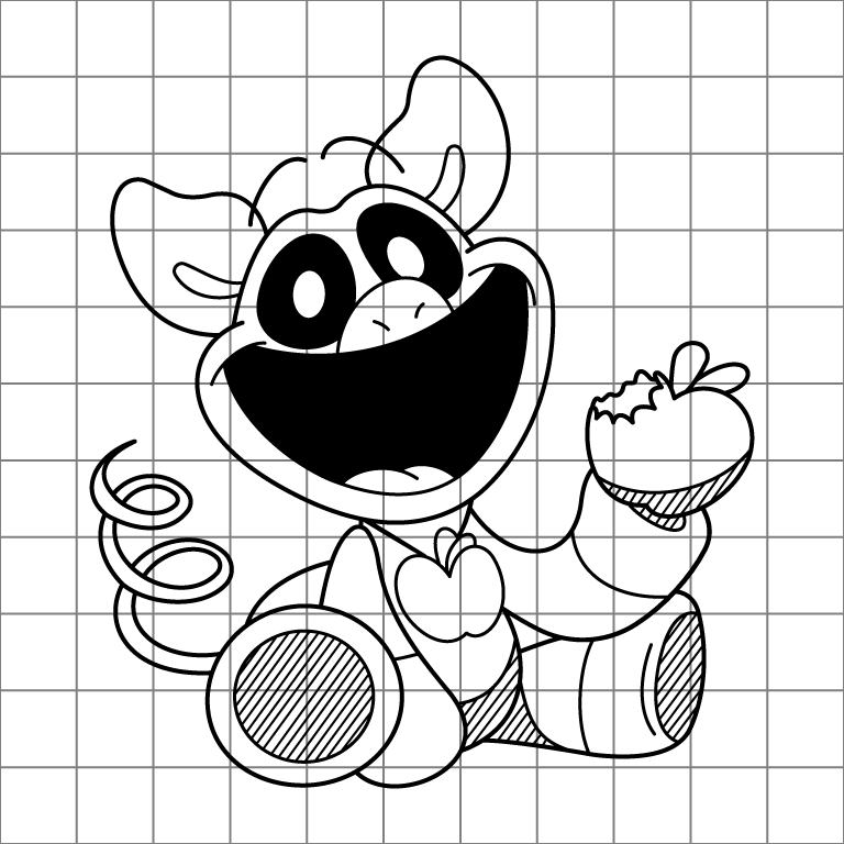 This playful black-and-white drawing of PickyPiggy features a cheerful pose and fun details, like the bitten apple it’s holding. Perfect for coloring enthusiasts, this sheet lets you experiment with a variety of colors and add your own creative touch to the character.