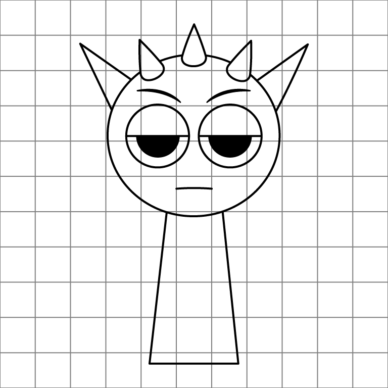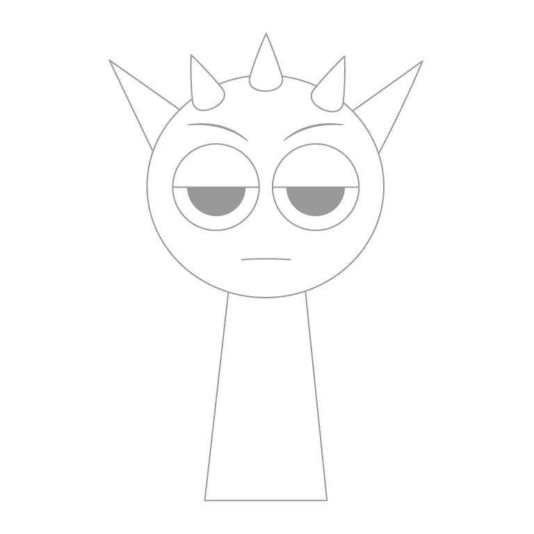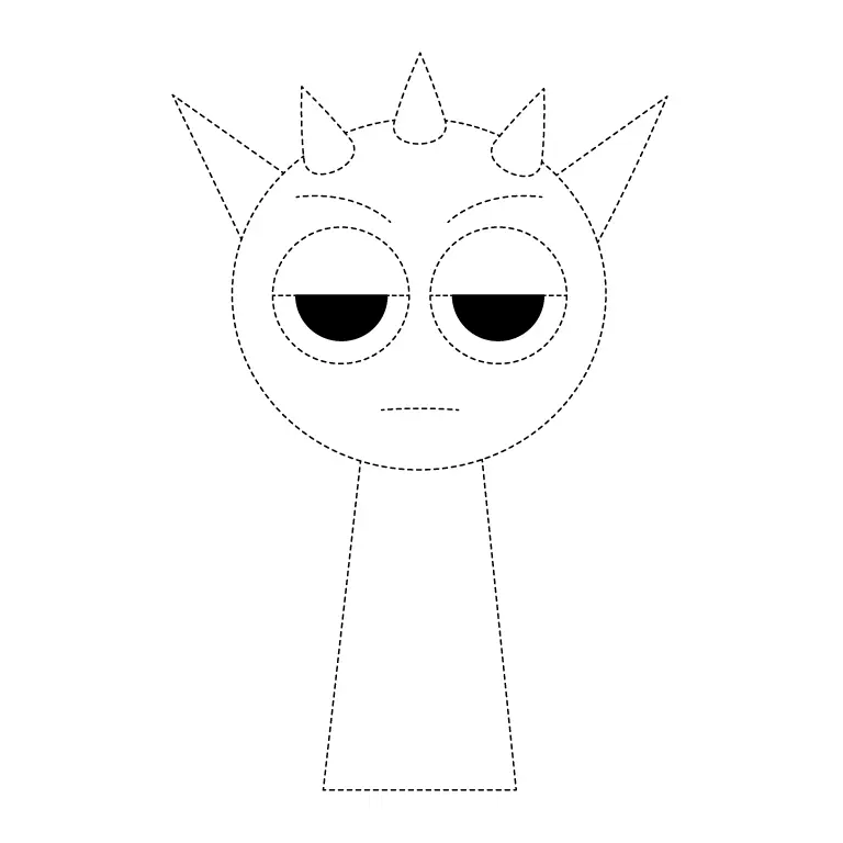 Finish by filling in the pupils with a dark shade to make the eyes stand out. Double-check all the lines and shapes to ensure the drawing is clean and symmetrical. The character is now complete and ready for coloring or further detailing!