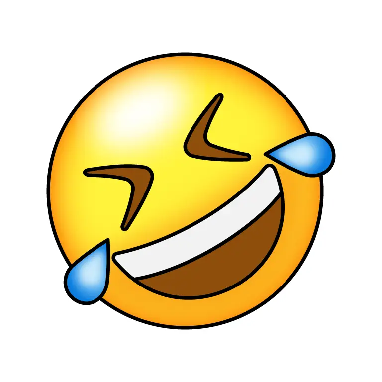 On one side of the face, add a small, curved tear shape coming from the eye. The tear should have a light curve and be slightly tilted downward, as if it's dripping from laughter.