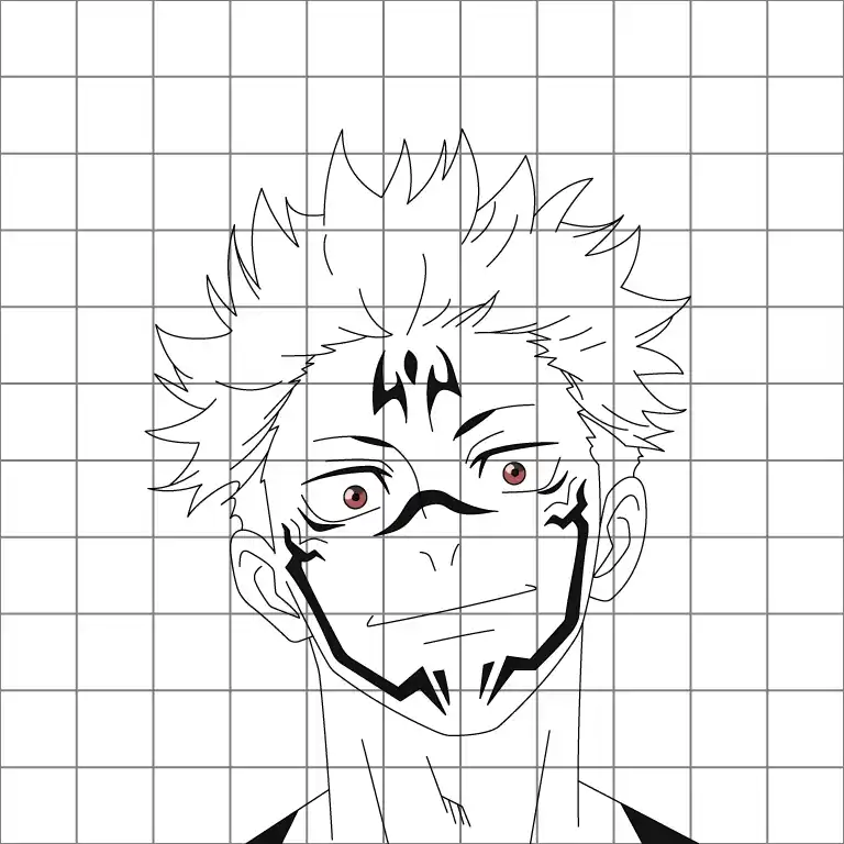 Follow this step-by-step guide to draw Ryomen Sukuna, the powerful cursed spirit from Jujutsu Kaisen. Each step breaks down the details, helping you capture Sukuna's intense expression and signature markings. By carefully following the images and instructions, you’ll be able to create a striking drawing of this memorable character.