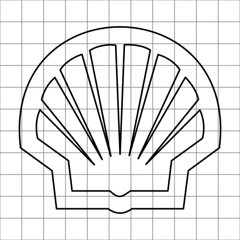 Use a darker line to carefully trace around the entire shell shape and its segments. This will give the logo a clean, defined outline, making it stand out clearly. Make sure the outline is smooth and consistent all around.