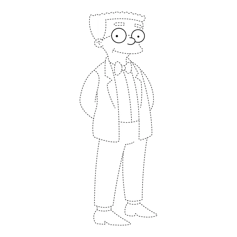 Go over your entire drawing, adding final details and ensuring all lines are smooth and connected. Erase any unnecessary guidelines. Your drawing of Waylon Smithers is now complete and ready to be colored!