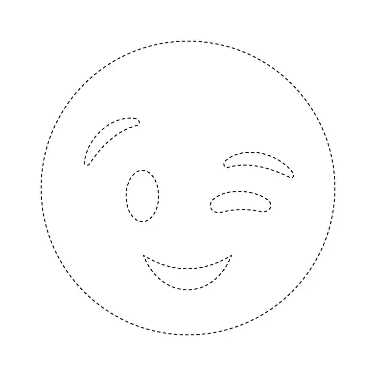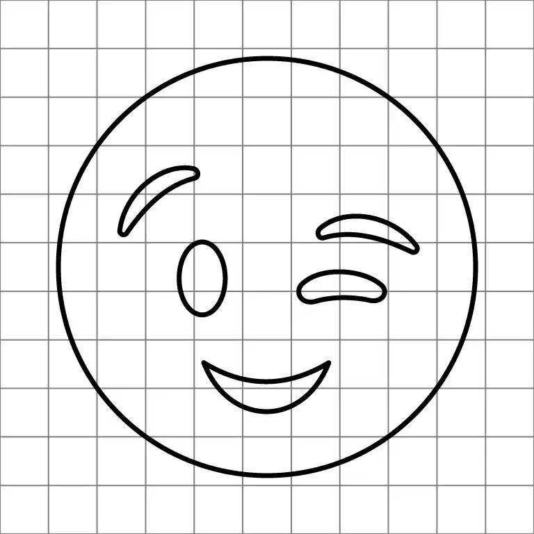 Go over the entire face outline including eyes, eyebrows, and mouth, finalizing the shape of the Winking Face Emoji. The drawing is now complete and ready for coloring or further details.