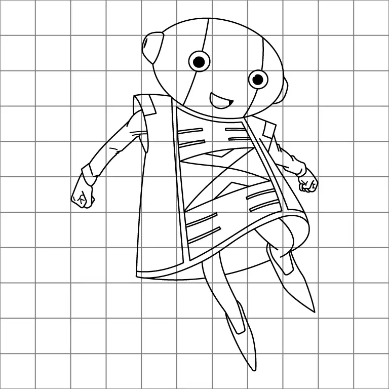 Draw intricate patterns inside the front area of the cape by adding a mix of horizontal and diagonal lines. Arrange these shapes symmetrically to create a detailed design that enhances the cape’s appearance.