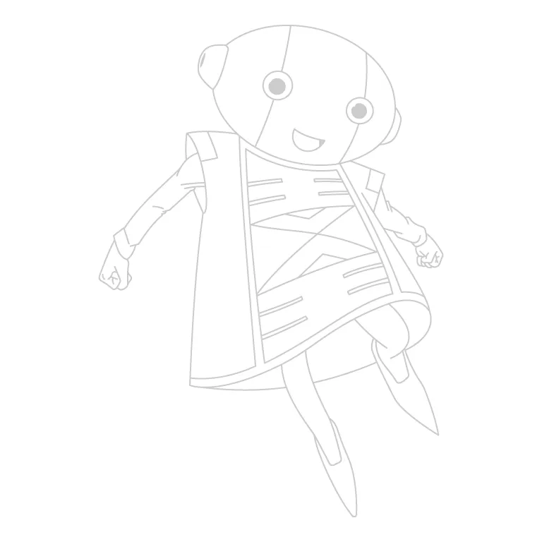 Sketch the arms coming out from the cape’s armholes, keeping them short and proportionate. Add the visible sleeves around the arms, then draw the small hands at the ends to complete the structure.
